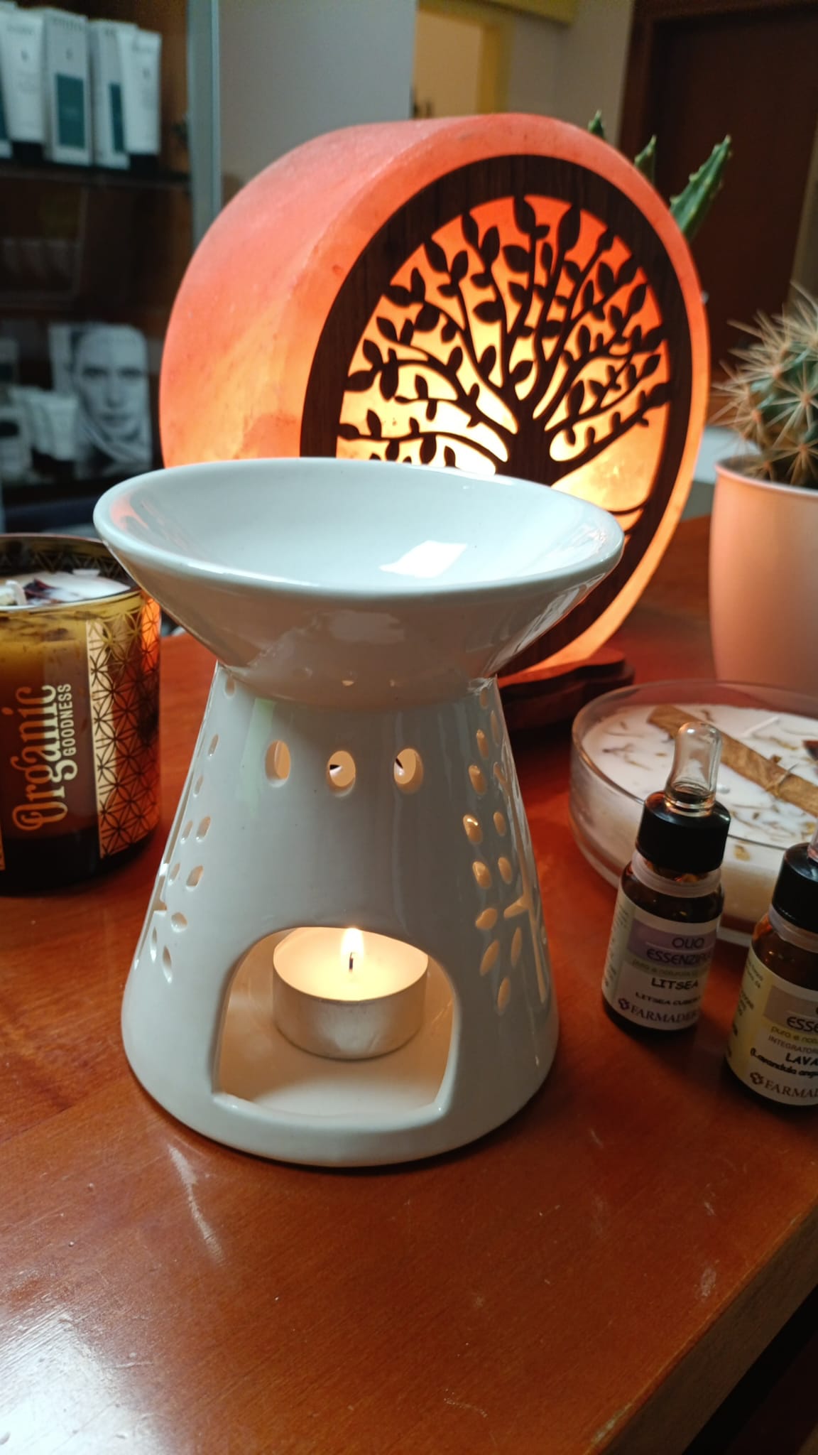 - Inserisci una candelina (di tipo tea light) nella parte inferiore del brucia essenze, nella sezione apposita. Assicurati che la candelina sia ben posizionata e che non sporga fuori dalla base.