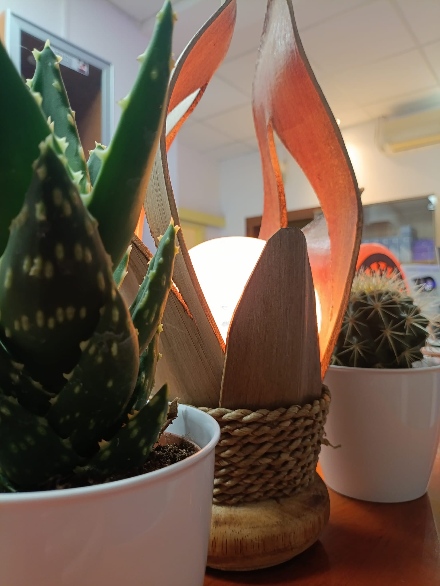 Lampada di sale 40cm con foglie di cocco natural brown.